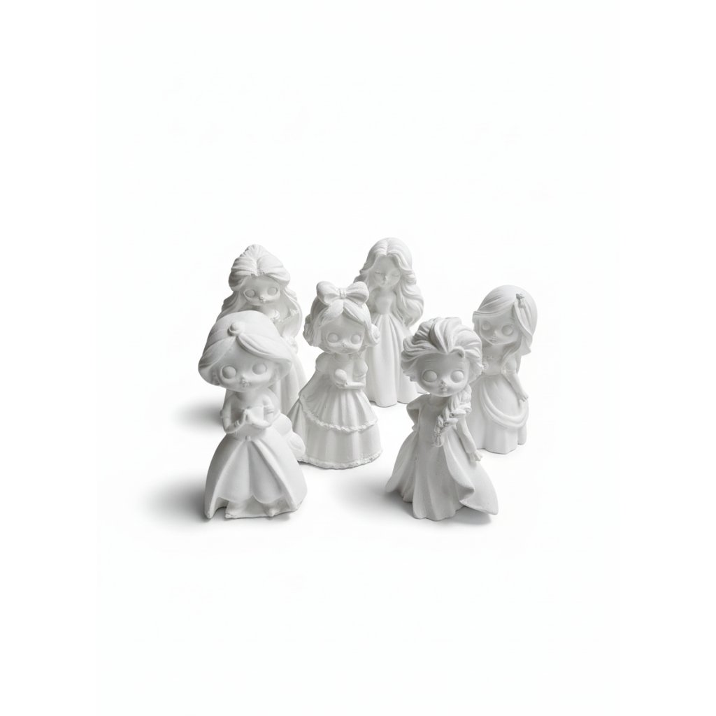Šest 3D postaviček k vybarvení. Kreativní sada podporující fantazii a jemnou motoriku.
