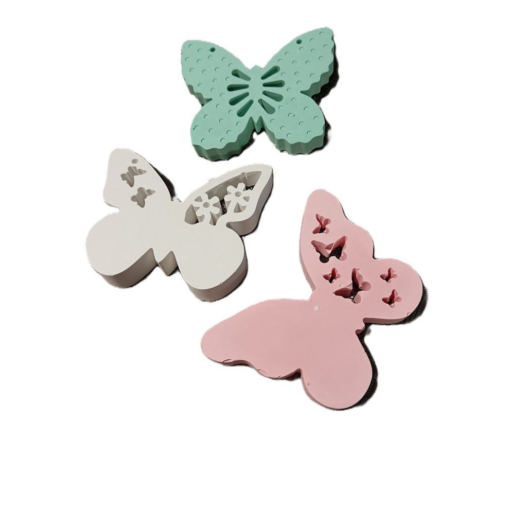 Motýlí rodina - Sada obsahuje 3 motýly o velikosti 5 cm, 8 cm a 12 cm. Jedná se o 2D odlitky, které dobře stojí v prostoru. Celková hmotnost je 250 g. Vhodné k výzdobě interiéru i exteriéru. Barva bílá.