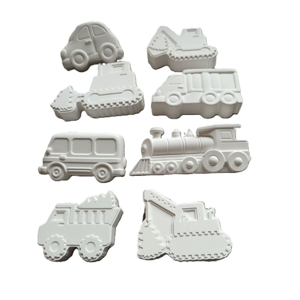 Těžká technika je sada 8 dopravních prostředků k domalování 2D odlitky, barva bílá, velikost