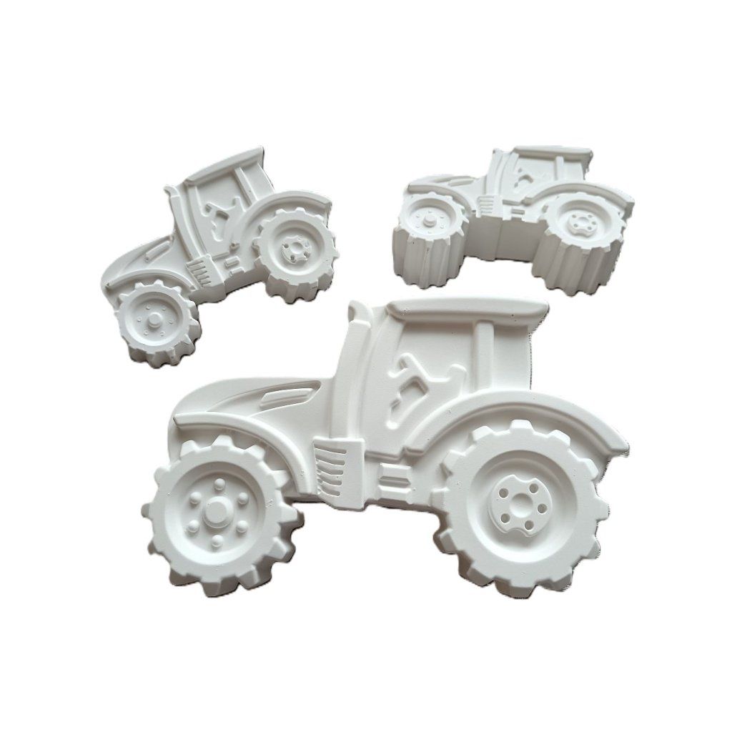 Polem nepolem ... 3x traktor čeká na svého traktoristu Sada 2D odlitků, barva bílá, velikost 2x 1x Celková hmotnost sady je